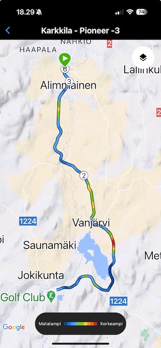 Ulkona ajaminen on kyllä herkkua, vaikka ilmat viilenee ja illat hämärtyy. Vartin yli 6 illalla olin treenin ajanut ja oli hämärää. Kymmenen minuuttia myöhemmin ja etuvalo olisi ollut ehdottomasti tarpeen.